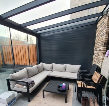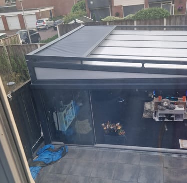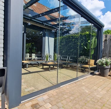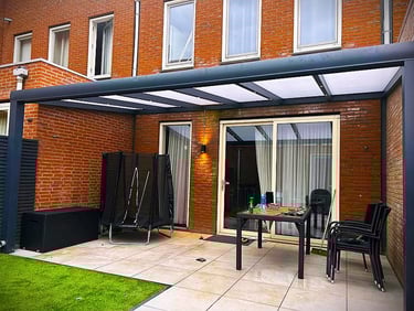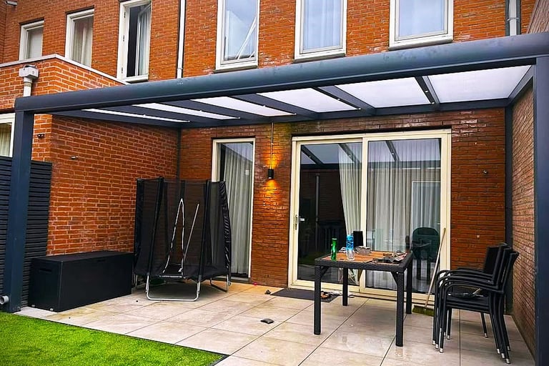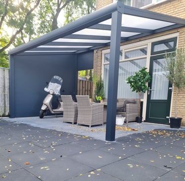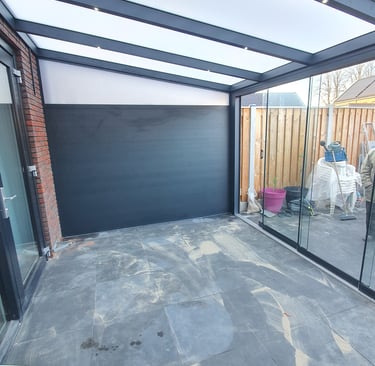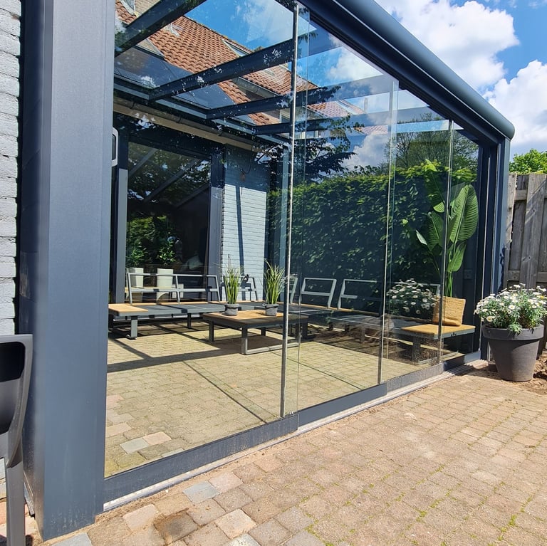 Een aluminium veranda is de perfecte combinatie van stijl, comfort en duurzaamheid. Dankzij het sterke, onderhoudsarme materiaal geniet u het hele jaar door van extra leefruimte in uw tuin. Aluminium is bestand tegen alle weersinvloeden en behoudt zijn moderne uitstraling zonder te roesten. Met glazen schuifwanden of zonwering creëer je eenvoudig een aangename buitenruimte waarin je kunt ontspannen, werken of dineren — comfortabel en beschermd, in elk seizoen. Welke mogelijkheden zijn er en waar kiest u voor? Hieronder hebben we voorbeelden van veranda's op verschillende manieren. Hierna zullen we kort de keuzes toelichten. Weet u niet zeker wat u wilt en heeft u advies nodig? Dan kunt u uiteraard altijd contact met ons opnemen.
