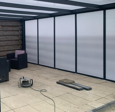 - Polycarbonaat: Meest gekozen bij een polycarbonaat dak. Samen met het een polycarbonaat dak sluit het ook goed bij elkaar aan.