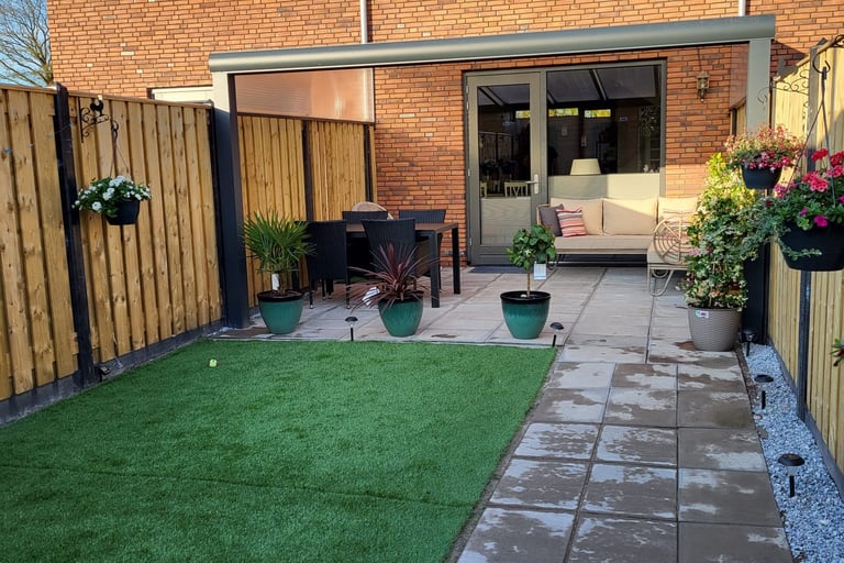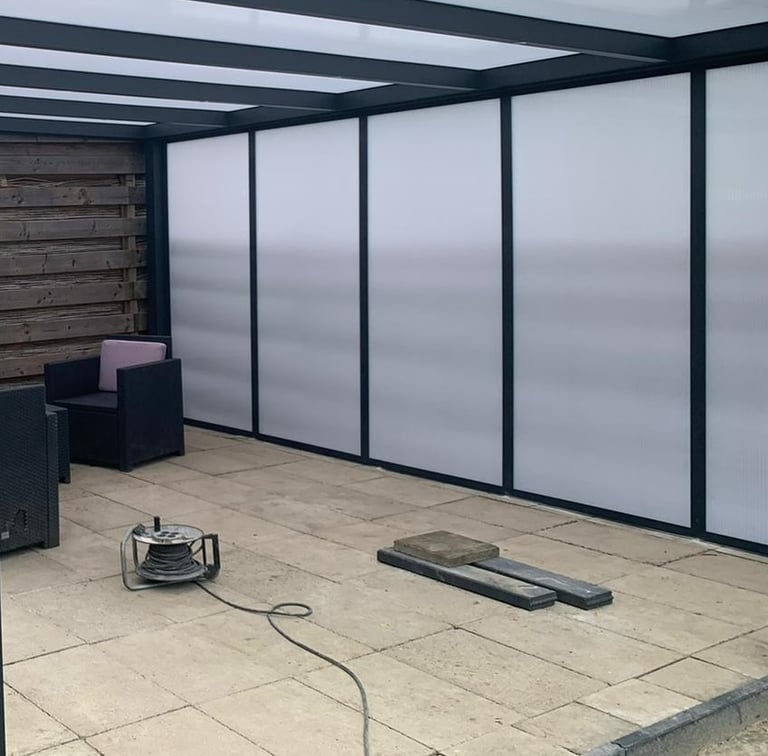 Veranda met aluminium zijwand + polycarbonaat spie